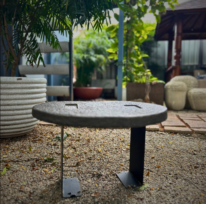 This contemporary outdoor table combines a solid stone top with sleek metal legs, creating a refined balance of strength and elegance. Designed for versatility, it complements both indoor and outdoor settings while adding a modern, understated character. Its clean lines and durable construction make it a functional yet stylish addition to patios, gardens, balconies, or lounge spaces.