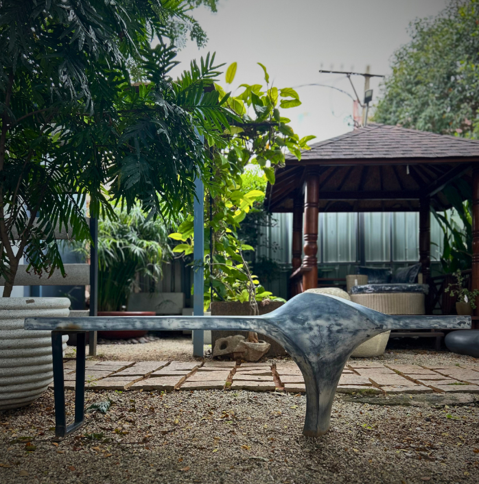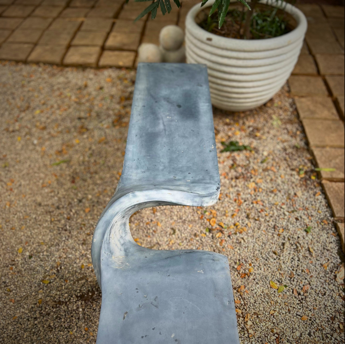 A contemporary sculptural bench featuring a flowing, wave-like form with seamless curves. Its bold yet refined design blends artistic expression with functional seating, making it a striking centerpiece for modern indoor and outdoor environments.